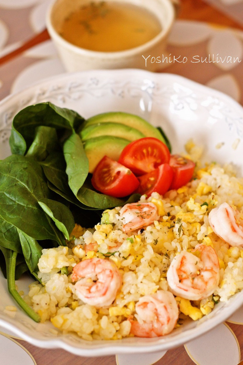 6.     Stir the eggs and rice until the rice becomes less sticky. Put the shrimp back in the pan and add scallions. Continue to stir everything together.