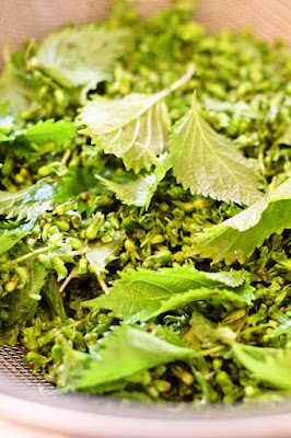 the Shiso seeds from the stalks when they are fully plumped with some flowers